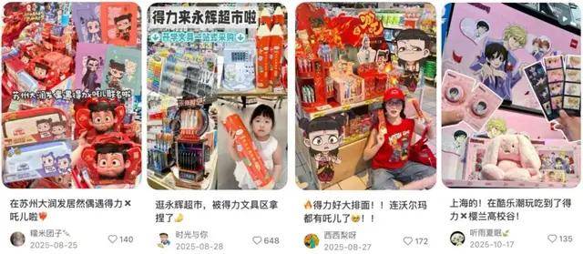 这种场景化布局,让Deli World,成为了“爱逛、爱淘”的年轻群体的兴趣聚集地——即便并非为了购买文具,年轻人也愿意步入店内,打卡拍照、感受氛围、发现惊喜。消费者扫货、拍照、打卡发平台,收获了情绪价值,得力则在火热的社交分享中成功“破圈”。