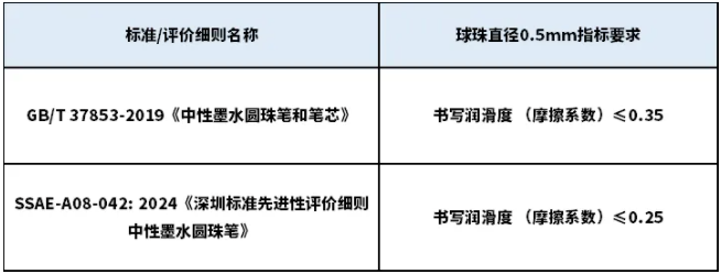 SSAE-A08-042: 2024《深圳标准先进性评价细则中性墨水圆珠笔》要求球珠直径0.5mm的中性笔,应划线m以上,线迹无明显断线、变淡现象。