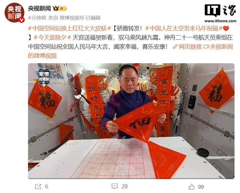 IT之家 2 月 16 日消息,据央视新闻今日报道,神舟二十一号航天员乘组在轨送上新春祝福: