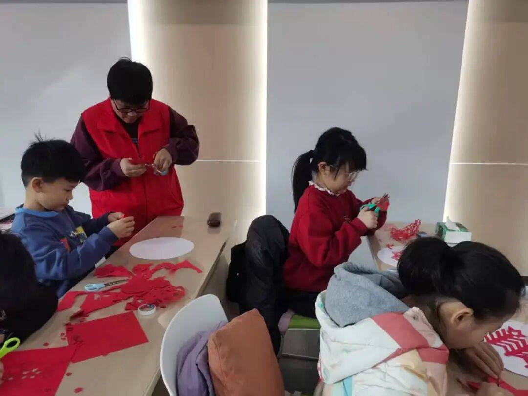 不同于单纯的辅助,这里的许多课程都由志愿者们亲自“掌勺”。他们将自己掌握的传统技艺和文化知识,耐心地传授给孩子们。在志愿者的指导下,一张张红纸在孩子们手中变成了精美的“春”字和窗花。课桌间,志愿者们还不时俯身,手把手纠正孩子们的握剪姿势,确保每一个细节都精准到位。